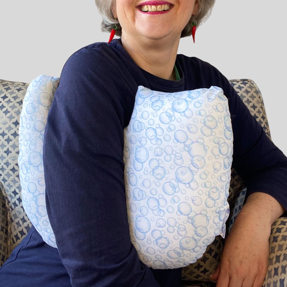 Breast cancer support pillow (blue soap bubbles print)