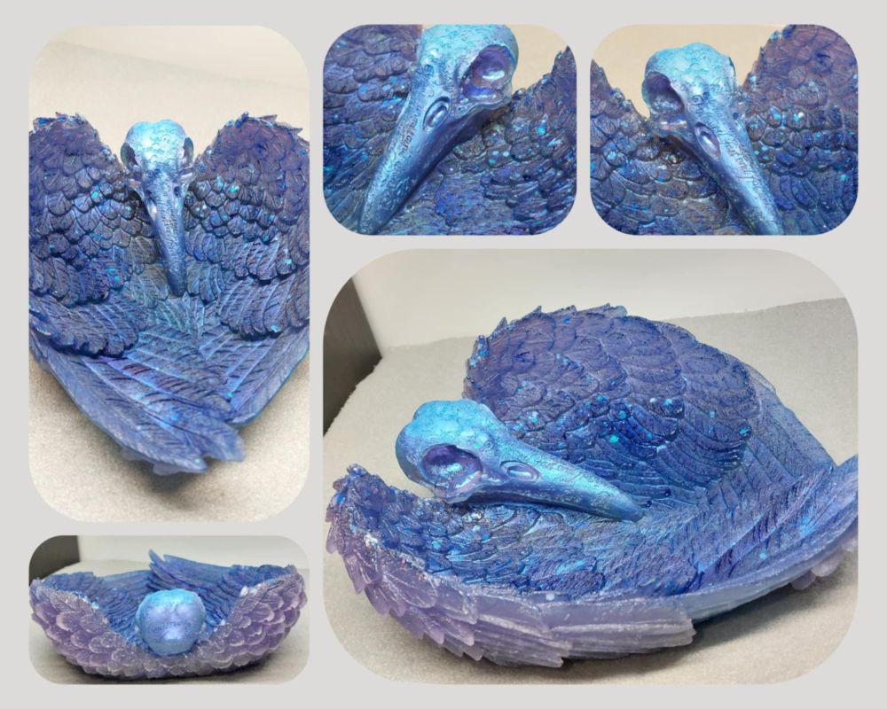 Raven Skull with Wings Trinket Bowl Jewellery Dish - Ready 2 go and Custom Made - Edgar Allen Poe's Poetic Nevermore Bird Creature Treasure Keep - 17cm - Made w Resin