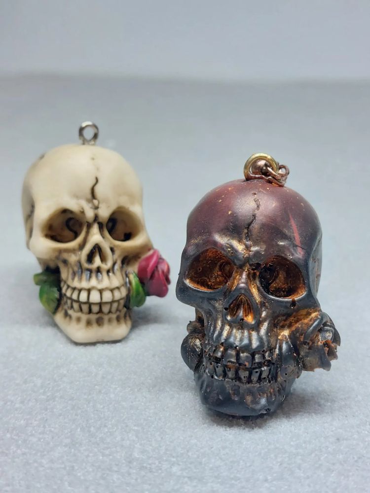 Skull with Rose Keyrings - festive alternative, macabre, Halloween Dia de los muertos, Day Dead - Keyring keychain - made wh resin