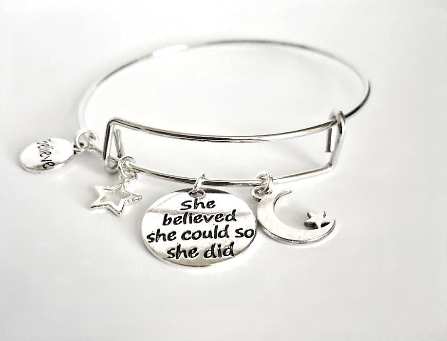 Beautiful charm bracelet, made in Ireland with quality materials. Adjustable, highly polished stainless steel bracelet and charms. Great for gifting, or a personal treat.. it arrives in a pretty organza bag, and has free shipping!... the perfect excuse to add something meaningful to your jewellery collection!