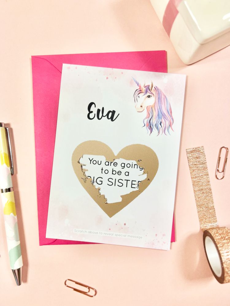 If you are looking to reveal your pregnancy to your little girl in a cute & fun way, we have the best scratch card announcements for you!