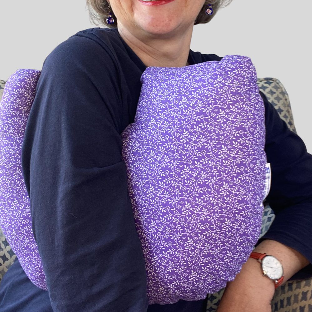 I know what people need so my pillows are made of colourful cotton fabrics, polyester filling and are fully reversible and fit comfortably under either armpit.