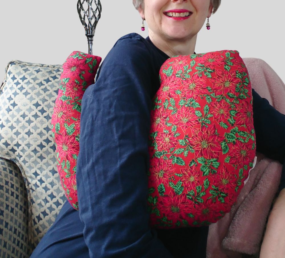 Breast cancer surgery support pillow (red poinsettia flowered fabric)