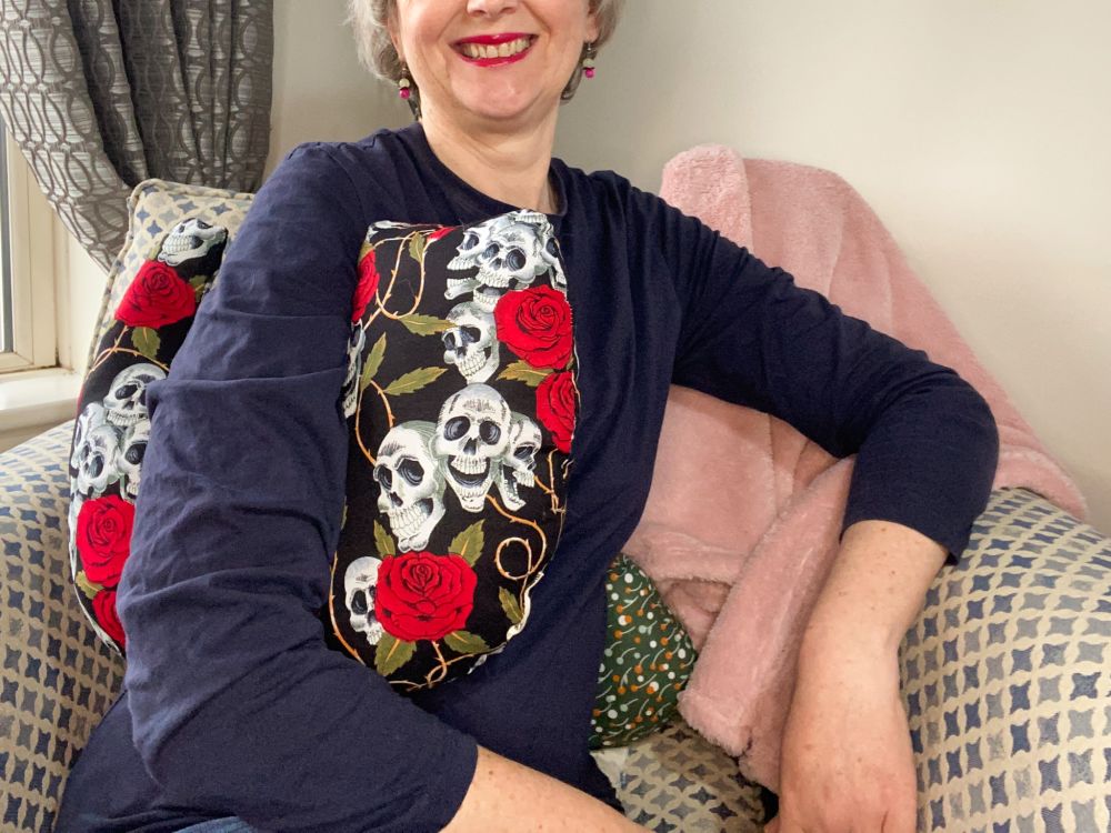It measures 43cm wide X 37cm long and 10 cm in depth. This has skulls and roses cotton fabric which is soft and breathable. All pillowss come with a I love handmade label, and are fully reversible. You can opt for matching side ties which can be used to secure the pillow in place, if desired.