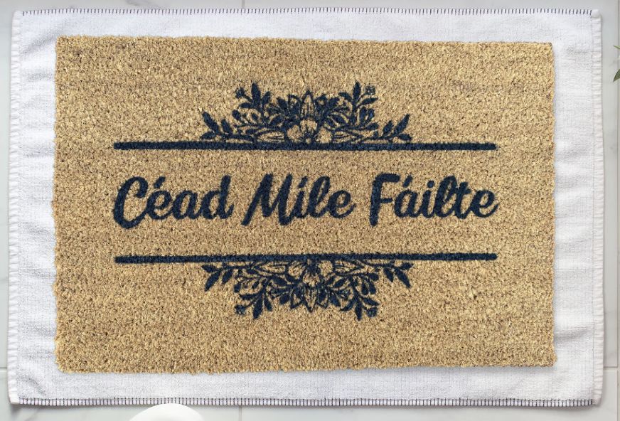 Add some of the beautiful Gaeilge language to your home, it’s the perfect way to greet you or your guests every day! Our doormats also make wonderful gifts for Housewarmings, Weddings, Birthdays, Christmas or "just because".