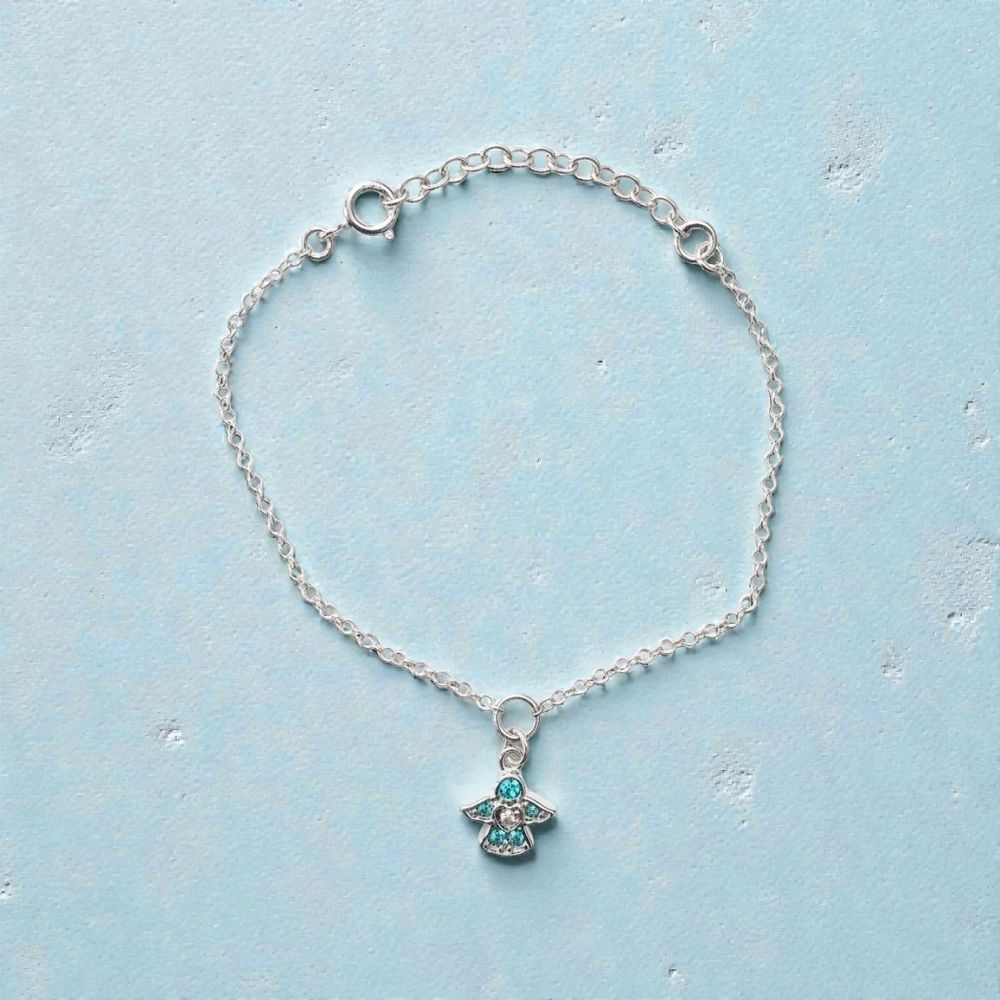 Kids Angel Blue Zirconia Sterling Silver Bracelet