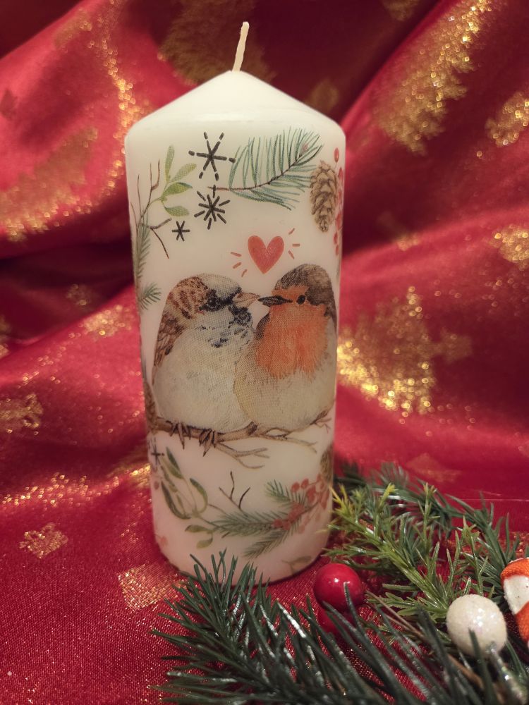 Christmas candles with robins
