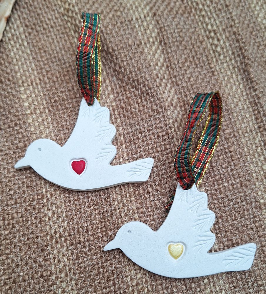 Christmas turtledove, Xmas dove, little clay bird, handmade Christmas tree ornament