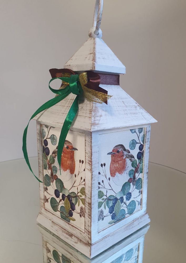 Beautiful Led lantern decoupaged with Robin
