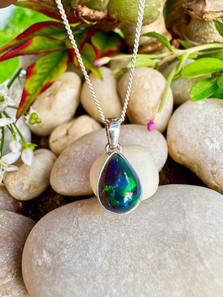 Genuine Australian Chalama Black Opal Sterling Silver Necklace ,Birthday Jewellery