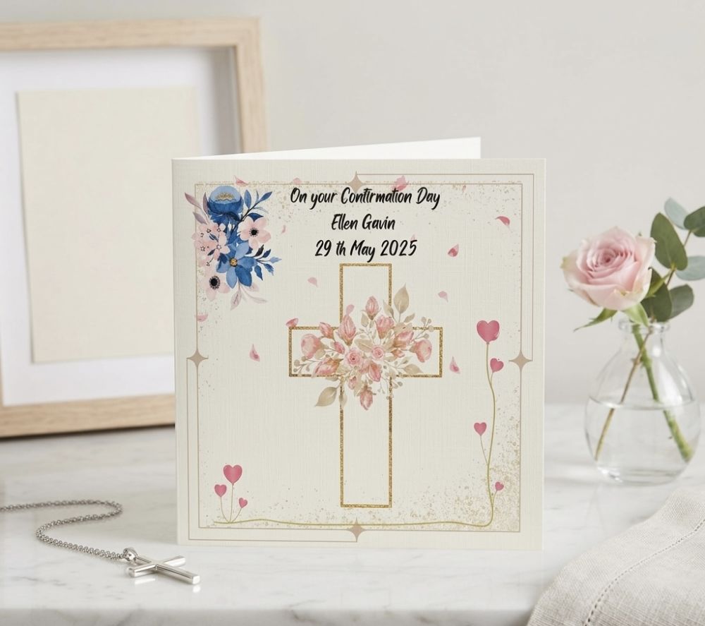 Celebrate a special milestone with our personalised First Communion card for girls. This beautiful design features delicate details and a heartfelt message to mark this important occasion. Customise with her name for a truly unique keepsake. A meaningful and memorable way to show your love and support.