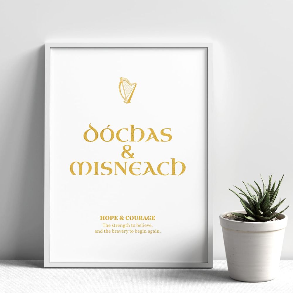 Irish Gold Foil Print – Dóchas & Misneach Wall Art
