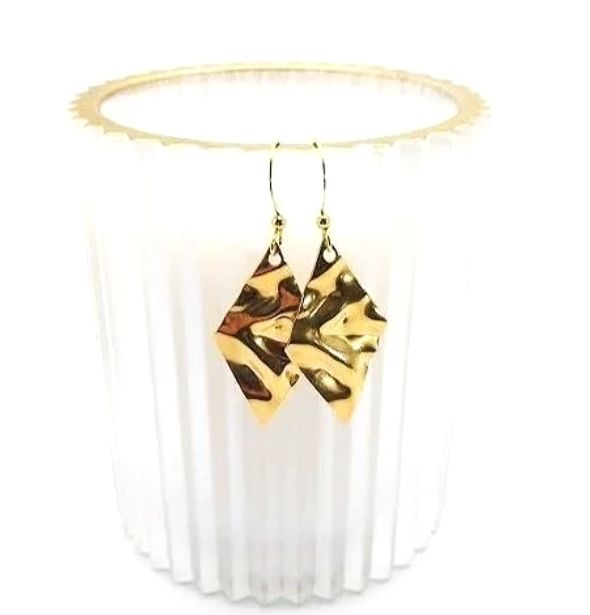 Gorgeous earrings in gold stainless steel…. suspended below gold plated, nickel free earwires (suitable for sensitive ears). The drop on these earrings is approx. 1.25ins/3.2cm. ....Created in Ireland with quality materials. These simple, yet elegant earrings would be a lovely addition to any jewellery collection…. Great for special occasions! Perfect for gifting, or a treat for yourself! They arrive in a pretty organza bag, and have free shipping!