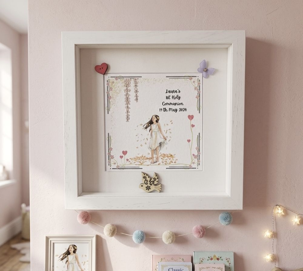 A beautiful, personalised gift for the first communion girl and boy! Keep the memories alive with this gorgeous keepsake handmade frame .