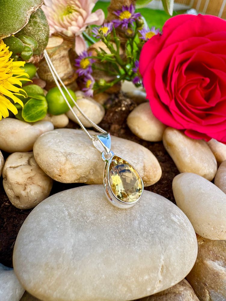 Pear cut Citrine bezel set in Sterling Silver Necklace