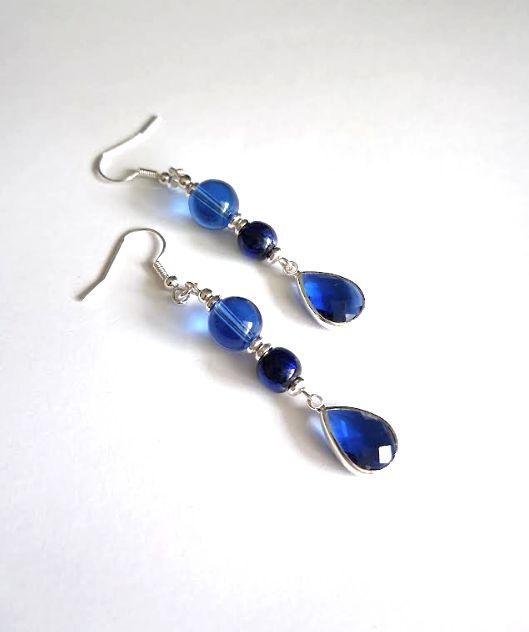 Beautiful glass drop earrings, handmade in Ireland with quality materials. Created with silver plated beads, gorgeous glass beads in varying shades of deep blue. Great for special occasions! Perfect for gifting, or a personal treat! free shipping!