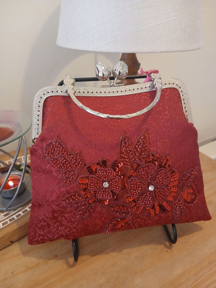 Handcrafted Vintage Inspired Airy Fairy Handbag - Cherry Red - 3D Floral Applique