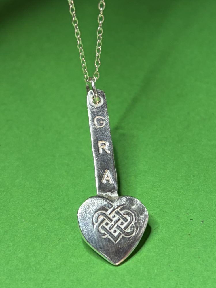Handmade silver Celtic heart and Grá love pendant on an 18 inch necklace
