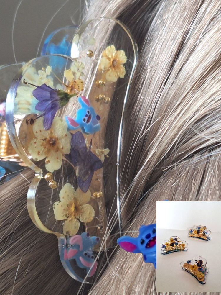 Handmade Resin Hair Claw Clips – Set of 3 with Flowers & Stitch