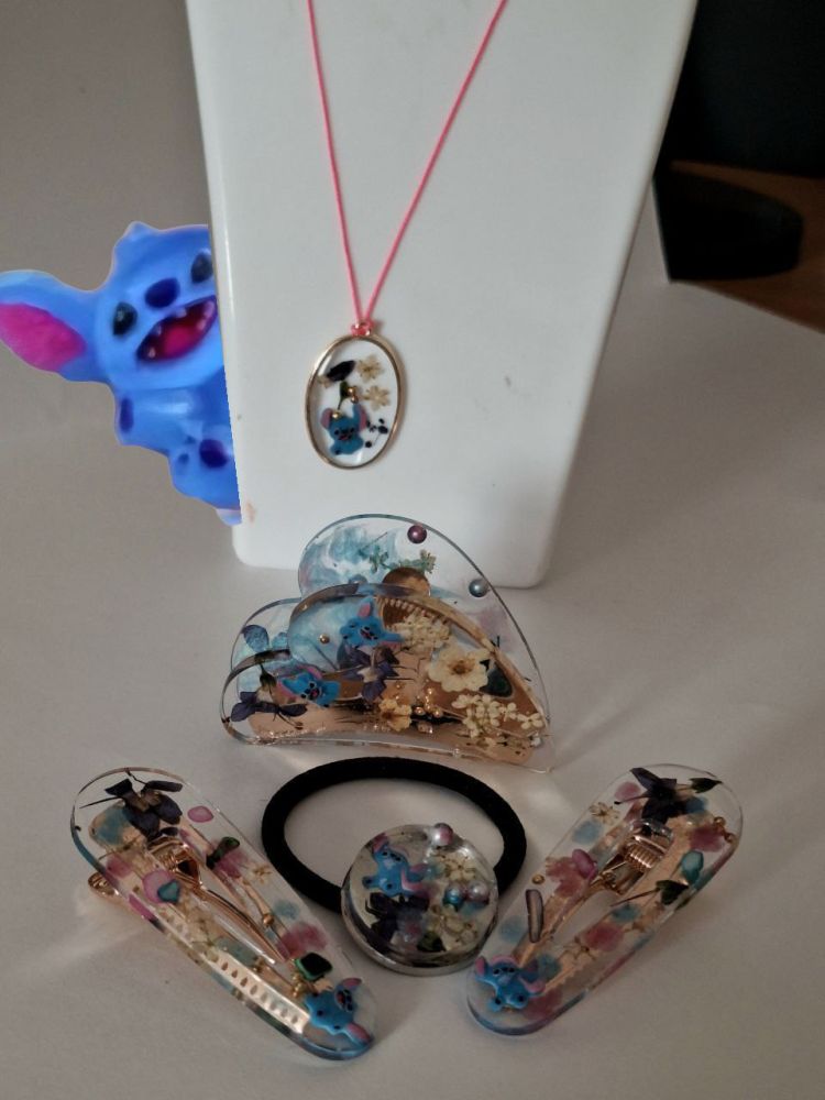 Handmade Resin Jewelry & Hair Accessories Set for Girls – Stitch & Flowers