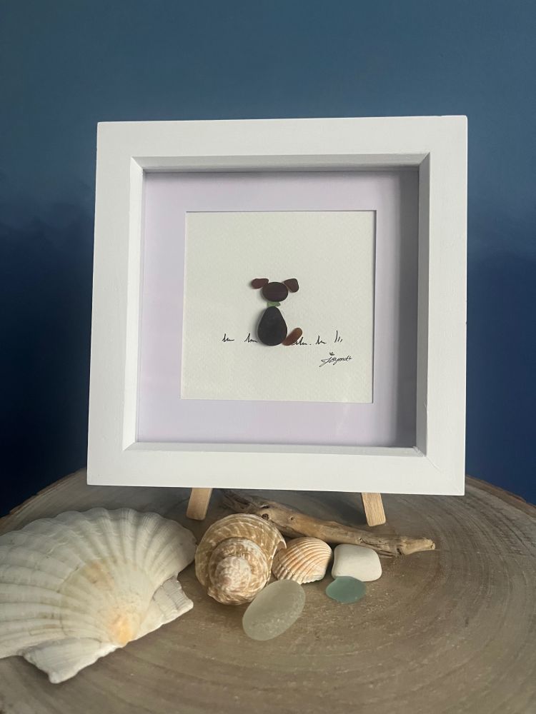 Little Dog. Made from naturally geniune tumbled seaglass collected by me and my family from Seaham beach. wooden frame 7 inches X 7 Inches