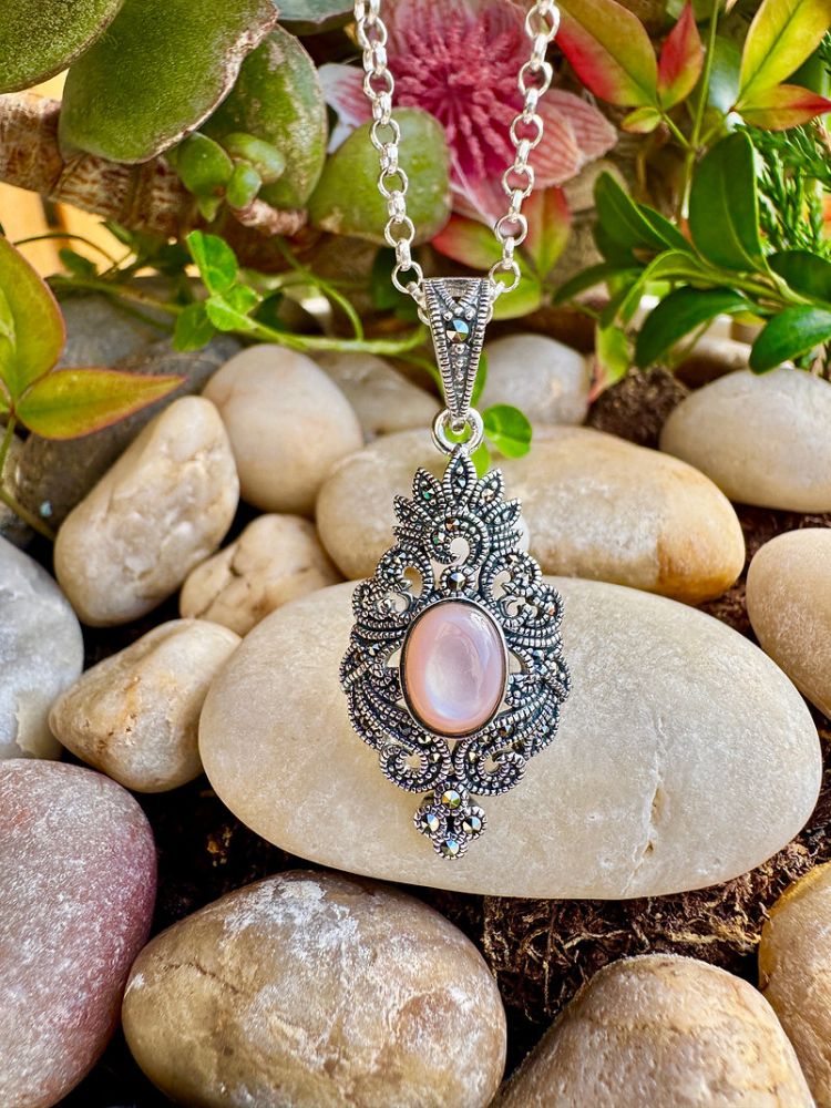 Mother of Pearl Marcasite Sterling Silver Necklace