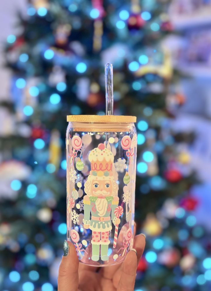 🎄 Nutcracker Glass Cup – 16oz | Pastel Christmas Drinkware