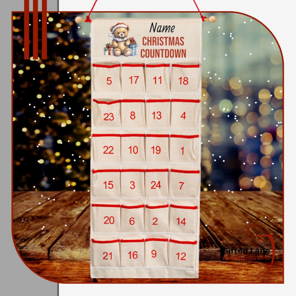 Count down the days until Christmas with a Personalised Christmas Advent Calendar. These calendars have 24 small pockets which could be used to contain a treat for a child can use to count down the days to Christmas Day and Santa arrival. The top of the Calendar can be personalised with any picture or name or text on them. Another special personalised gift from Gifted Lane and would make an ideal present for someone special this Christmas.