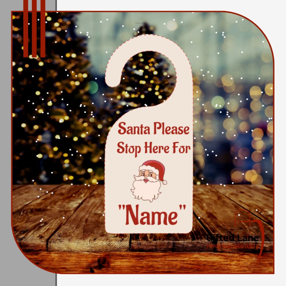 Decorate your home with a personalised Santa Please Stop Here wooden door sign from Gifted Lane. Make sure Santa comes into your home this Christmas with a personal message.