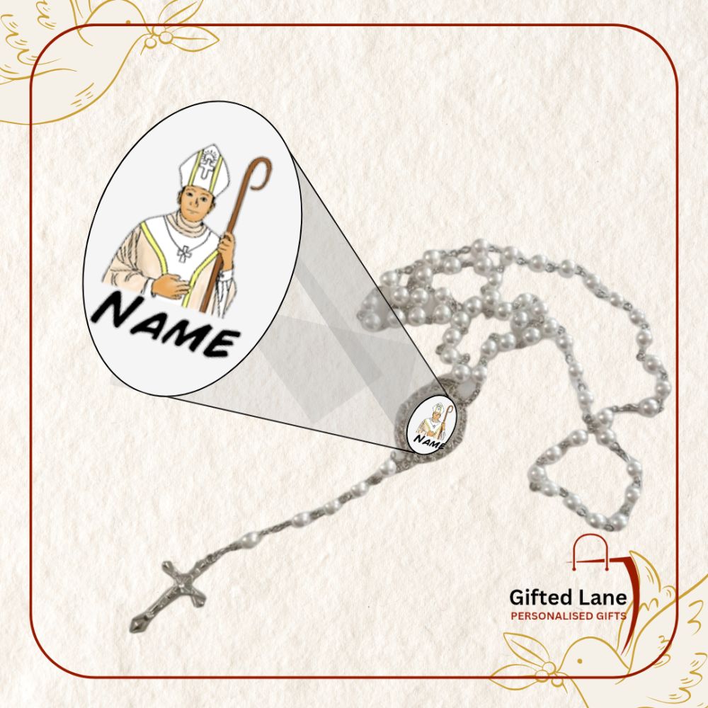 Personalised Confirmation Rosary Beads is a personalised gift accessory and a keepsake of a special day. They can be personalised with a picture and with a date or name on them. Another special personalised gift from Gifted Lane