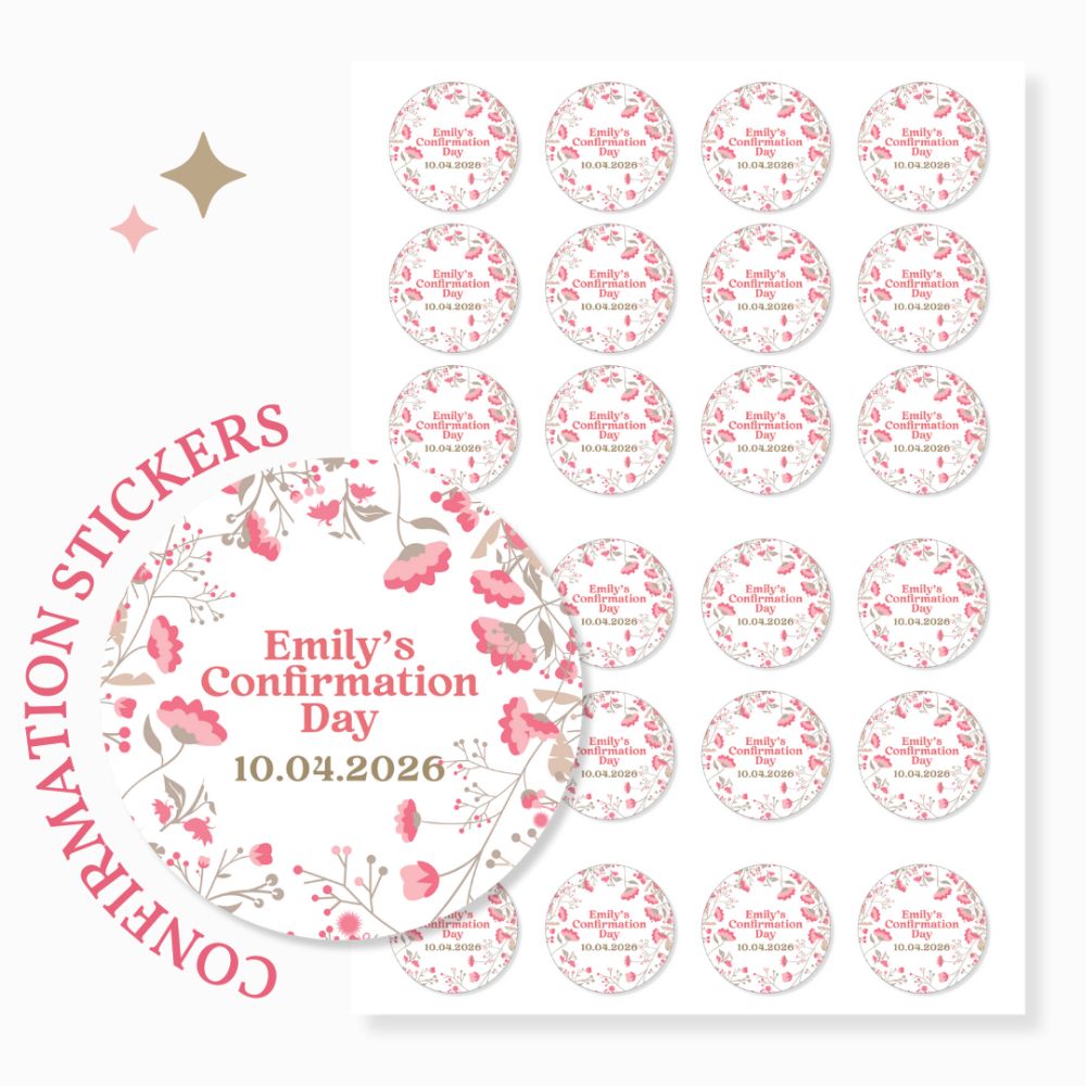 Each sticker features a beautiful pink floral wreath design. Simply provide the child's name and Confirmation date during checkout, and we'll create beautiful personalised stickers that make every party favour extra special.