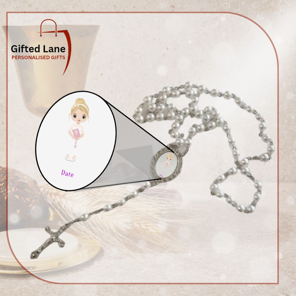Personalised First Holy Communion Rosary Beads is a personalised gift accessory and a keepsake of a special day. They can be personalised with a picture and with a date or name on them. Another special personalised gift from Gifted Lane
