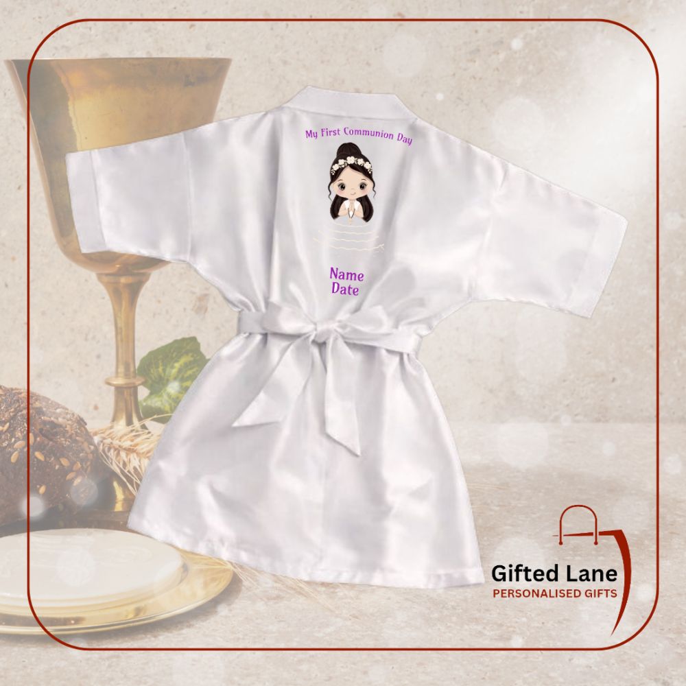 Personalised First Holy Communion White Satin Dressing Gown is a personalised gift and a keepsake of a special day.