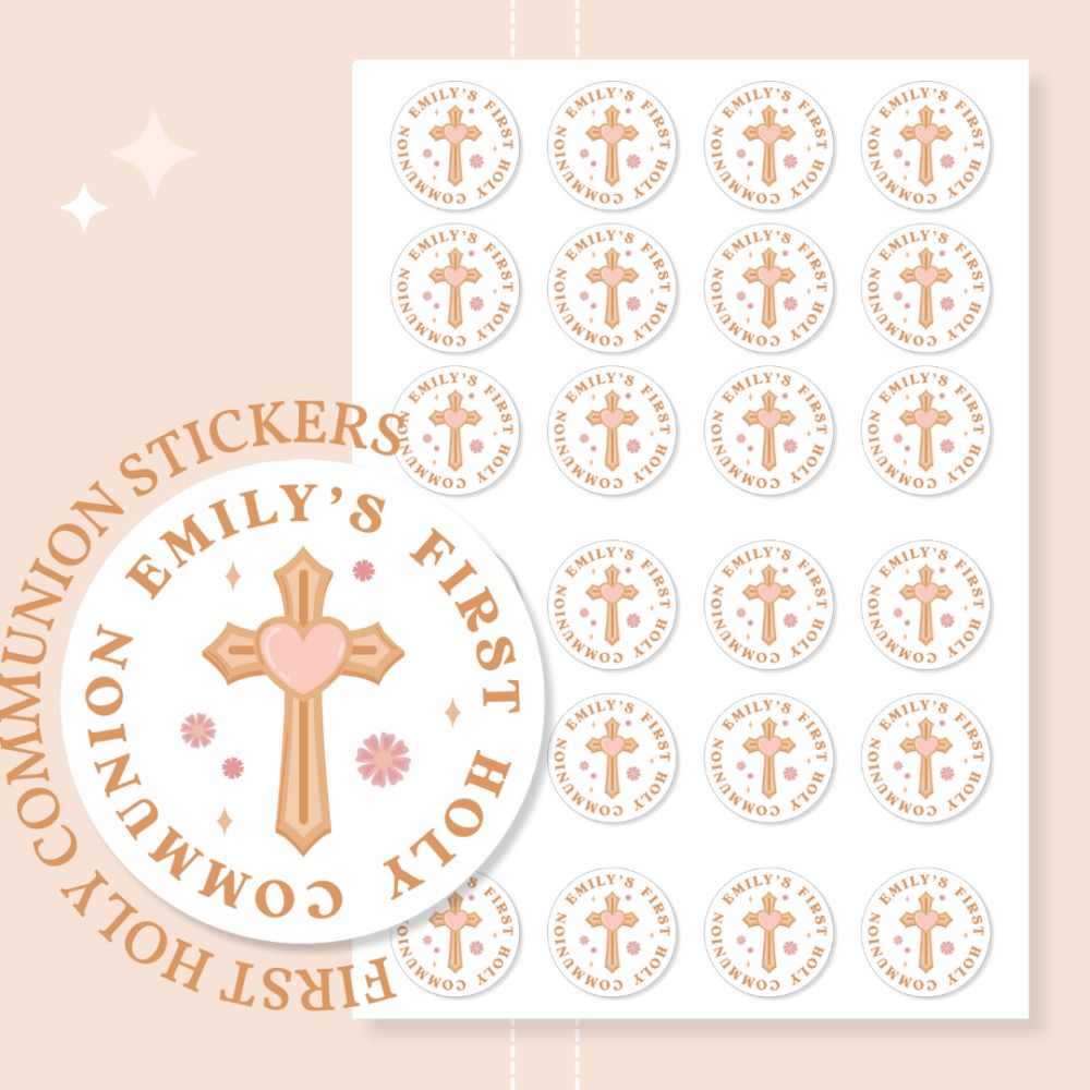 Celebrate their First Holy Communion with beautiful personalised stickers, handmade in County Cork, Ireland. Perfect for sons, daughters, godchildren, nephews, nieces, grandsons, granddaughters, or any special child marking this sacred milestone.