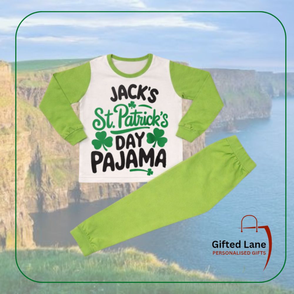 Personalised St. Patrick's Day Pyjamas are a personalised gift accessory and a keepsake of a babies First St. Patrick's Day or just to cosy up and watch the St. Patrick's Day Parade.