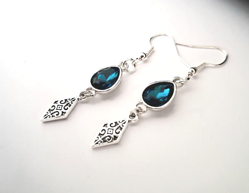 Beautiful earrings, made in Ireland with quality materials. Antique silver tone and faceted glass beads in petrol blue, suspended from silver plated, nickel free ear hooks.  Elegant, light, easy to wear, and great for special occasions.  Perfect for gifting, or for a personal treat!  Free shipping!