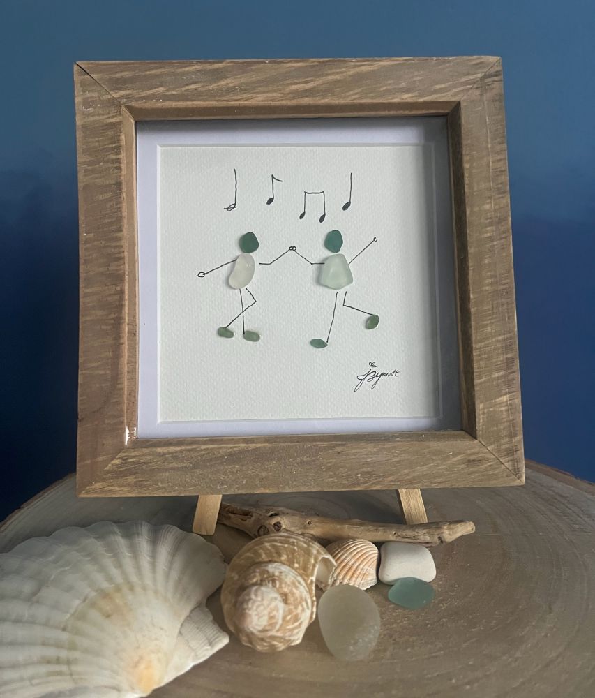 When you hear the music - Dance. Made from naturally geniune tumbled seaglass collected by me and my family from Seaham beach. wooden frame 7 inches X 7 Inches